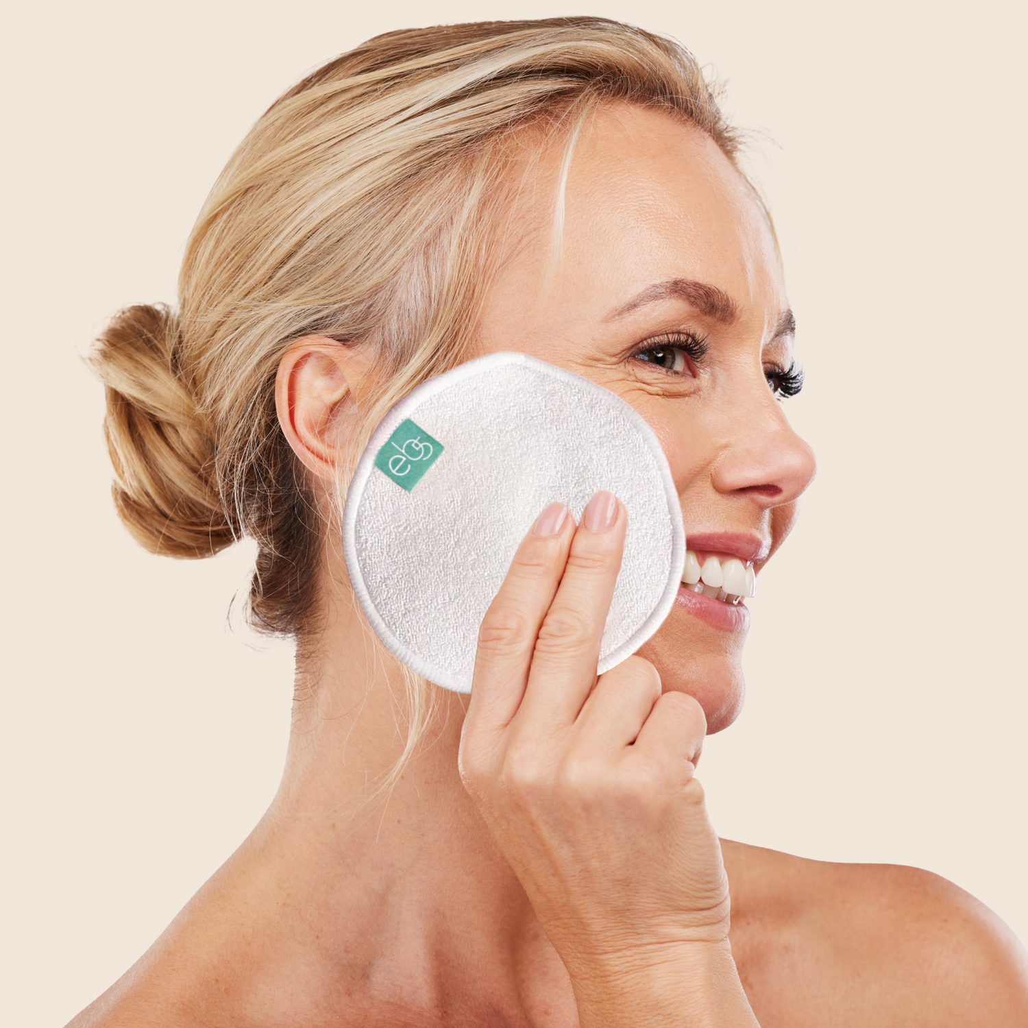 Just add warm water and place bamboo round on your skin for 15 seconds, moving in a gentle sweeping motion to remove all traces of makeup. Pairs well with makeup removers, micellar water, or other topical skincare.